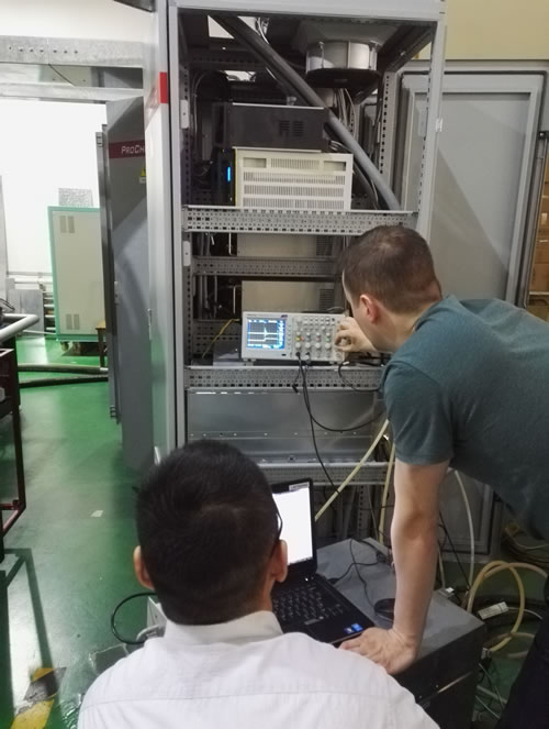 這是丹普公司第二次集成霍廷格公司的HIPIMS電源,為了更好的幫助丹普工程師了解新HIPIMS電源的功能,來自霍廷格波蘭工廠的HIPIMS開發(fā)工程師于2017年4月5日,到丹普工廠,現(xiàn)場指導(dǎo)丹普工程師進行HIPIMS電源的工作測試及各種參數(shù)設(shè)置原則。