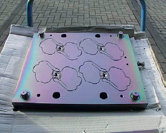 在彈性體的加工過程中,常常會發現傳統硬質鍍層的抗粘性能不是十分理想。高粘性堆積物常常只可以通過大量的機械處理方式例如噴砂工藝來去除。工具上的磨損不是由注模或硫化工藝本身而造成的,而是由這些高強度的清潔工藝造成的。離子氮化和鍍層的組合處理方式將極大地延緩堆積物的形成,并確保凹模的外形在高強度機械清潔處理過程中受到保護。
