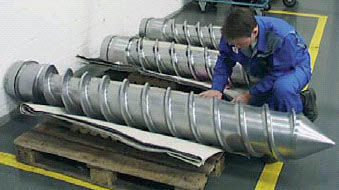 圖6采用離子氮化和PVDCrN多層鍍層的蝸桿,用于PVC擠壓加工