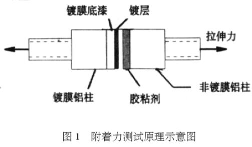2.1 鍍層附著力測試方法鍍膜后的鋁柱經膠粘劑對粘后,將鋁柱另一端的螺紋與材料拉伸試驗機的拉伸卡頭相接,通過測試對粘鋁柱的拉伸強度,分兩種情況來考察附著力的大小(見圖1):