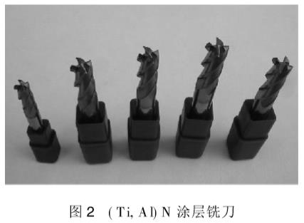 TiCN是TiN和TiC折中形式的膜系,用于各種刀具及模具,可提高使用壽命并兼有裝飾效果。目前,TiCN膜的最大用途是作為體育器材(如高爾夫球頭)、電子業(如手機外殼)、鐘表業(手表外觀件)、眼鏡架、裝飾品等部件表面的裝飾功能薄膜。為改善TiN等硬質膜的高溫服役性能(抗磨損、抗氧化、熱疲勞),通過加入Al制備了硬度高、抗高溫氧化的(Ti,Al)N薄膜。該膜層主要用于各種硬質合金銑刀、車刀、鉆頭等工具。圖2為廣州有色金屬研究院制備的(Ti,Al)N涂層銑刀,膜基硬度高達37GPa,膜/基結合力大于70N,使用壽命達到同類進口產品的水平。