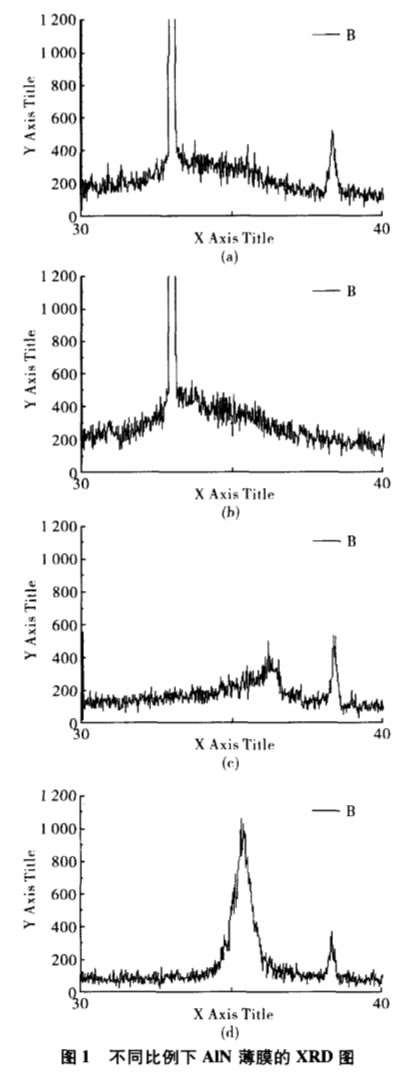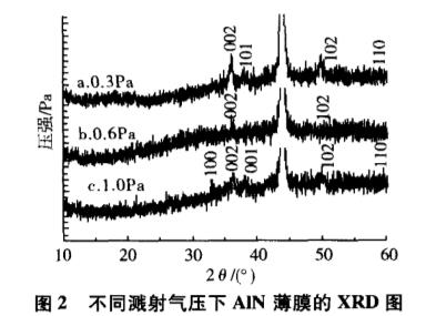 采用磁控反應濺射系統制備氮化鋁膜。當濺射氣壓較低時,薄膜呈(002)擇優取向。氮氣比例的增加有利于AIN(002)取向的生長。相反氮氣比例降低時,薄膜呈(100)擇優取向。