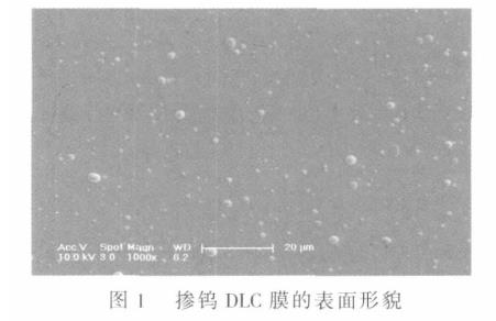 (1)摻鎢DLC膜光滑致密,具有典型的DLC膜Raman譜特征,為非晶碳膜上彌散分布著納米碳化鎢的復相結構;DLC膜的缺陷主要由過渡層制備時陰極電弧的噴射產生。